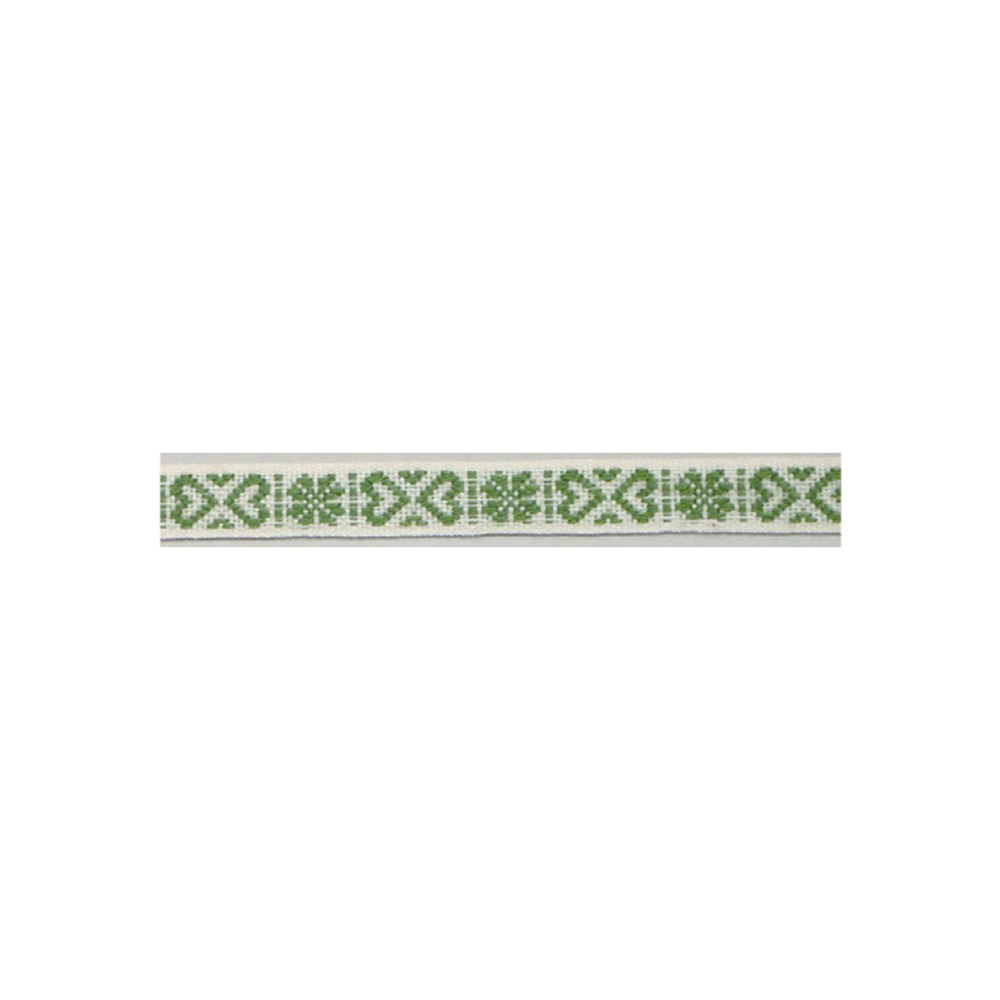 Band 11 mm vit/gröna hjärtan 25m/rulle
