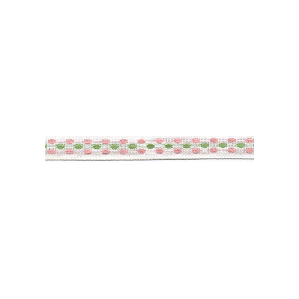 Band 12 mm, rosa/grön prickar 25m/rulle