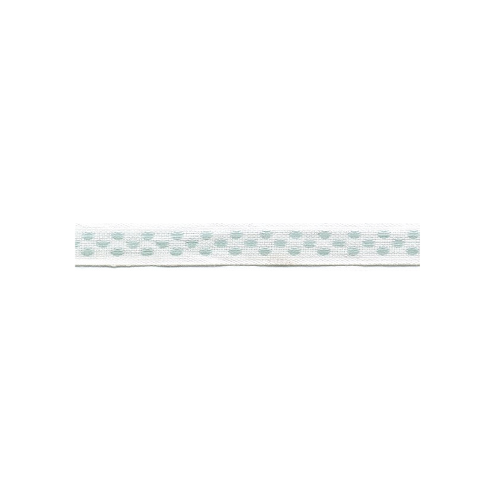Band 12 mm vit ljusblå prickar 25m/rulle